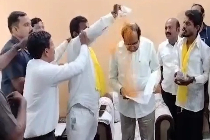 মন্ত্রীর মাথায় হলুদের গুঁড়া ছিটিয়ে দিলেন বিক্ষুব্ধ ব্যক্তি